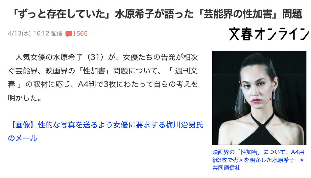 日本女明星自爆曾被男导演言语骚扰;