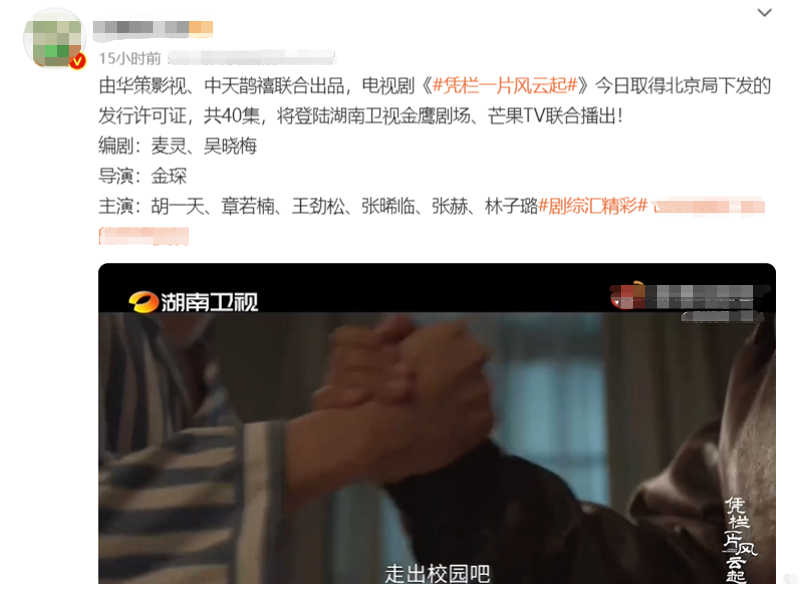 眼下又一部好剧将袭,网传电视剧《凭栏一片风云起》取得发行许可证,而且在湖南卫视官方发布的片单中也有该剧的名字,实力派演员云集,阵容强悍,看来湖南卫视又拿到一部“王炸”了。
