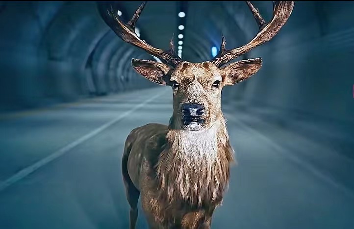 深夜,一个男人驾驶着车辆行驶在隧道中,他神情慌张,似乎经历了什么可怕的事情。他正准备点烟的时候,火机掉在了座位下方,正准备去捡的时候,车前方突然出现了一只鹿,男人急忙踩下刹车,定睛一看,却什么都没有,他以为是自己看花了眼。可就在这时,挡风玻璃上却出现了一个手印,并且这个手印还是从车内印上去的,但是车上就只有男人一人。