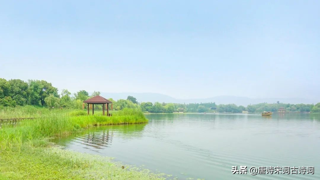 湖岸上红白花儿争相开放,散发着淡淡清香。湖边游赏的女子,花丛中的秋千,飞向空中的“鞠”,映衬着斜斜的柳带,分外热闹。