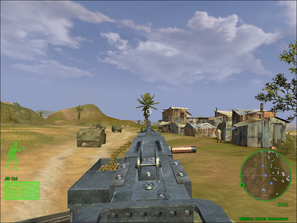 跟随车队:一路上火力尽管猛烈,但相对来说威胁不大,只需要按部就班用机枪扫射即可。