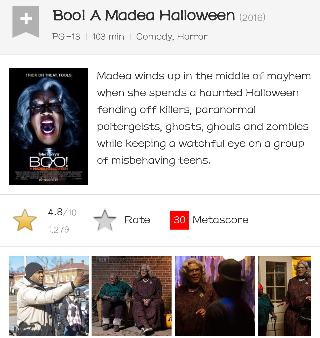 编剧,导演,主演,三个重任于一身,泰勒·派瑞自编自导的《黑疯婆子》系列迄今已有11年的历史,《黑疯婆子的万圣节》已是这一系列的第七部大电影。电影由狮门影业出品!