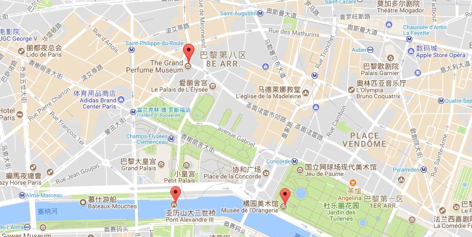 由上至下逆时针为:勒布里斯托酒店 亚历山大三世大桥 橘园博物馆