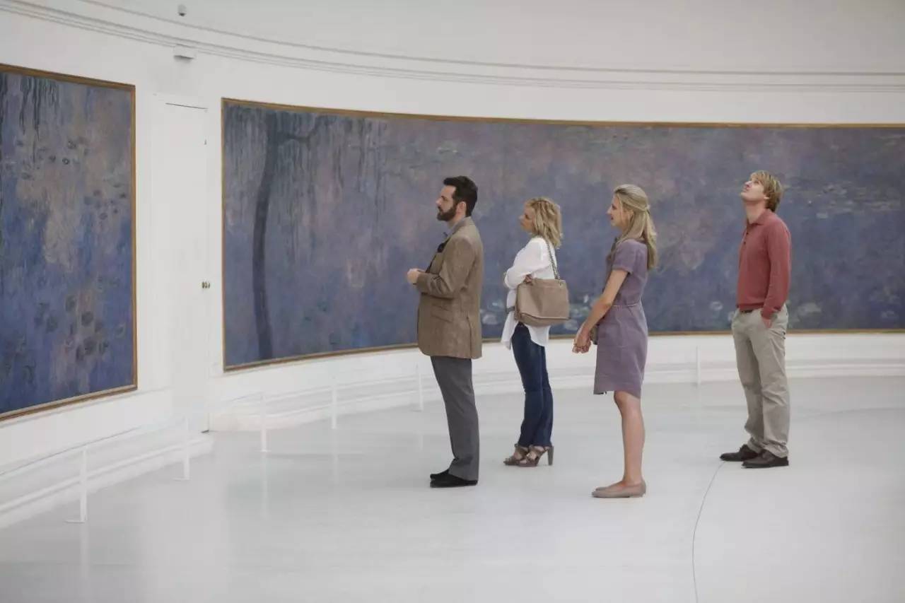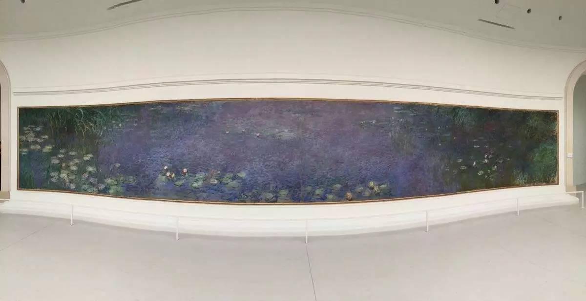 莫奈将自己的八幅巨型画作分别展示在两个360度椭圆厅里,让你视觉范围所到之处都被艺术所充斥,当你身在展厅中央,即使人来人往的时候,你也能感受画作带给你的震撼,仿佛整个人置身于莫奈的冥想花园之中。