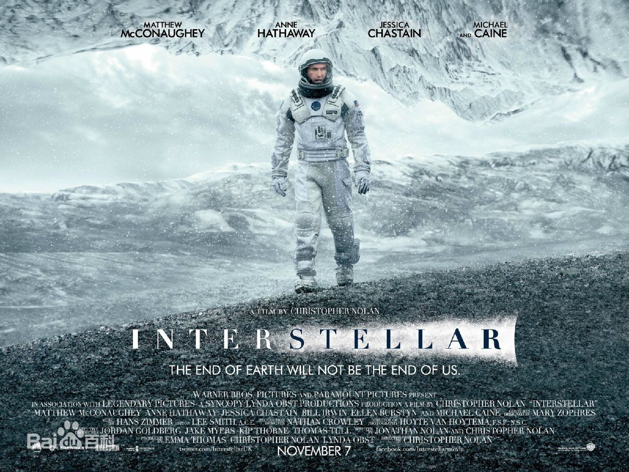《星际穿越》(interstellar)是克里斯托弗·诺兰执导,由马修·麦康纳、安妮·海瑟薇、杰西卡·查斯坦及迈克尔·凯恩主演,上映于2014年的一部原创科幻冒险电影,《星际穿越》虽然是一部科幻电影却是基于知名理论物理学家,诺贝尔物理学奖得主基普·索恩的黑洞理论经过合理演化之后,加入人物和相关情节改编而成。