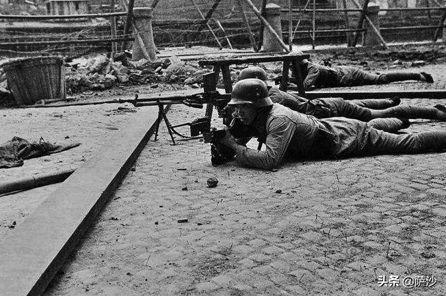 在德军重机枪火力的拦阻下,这几个德国兵散开几米,交替滚动前进,不断利用地形地貌掩护。