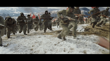 上图是韩国电影《太极旗飘扬》中,虚构的志愿军冲锋的场面。