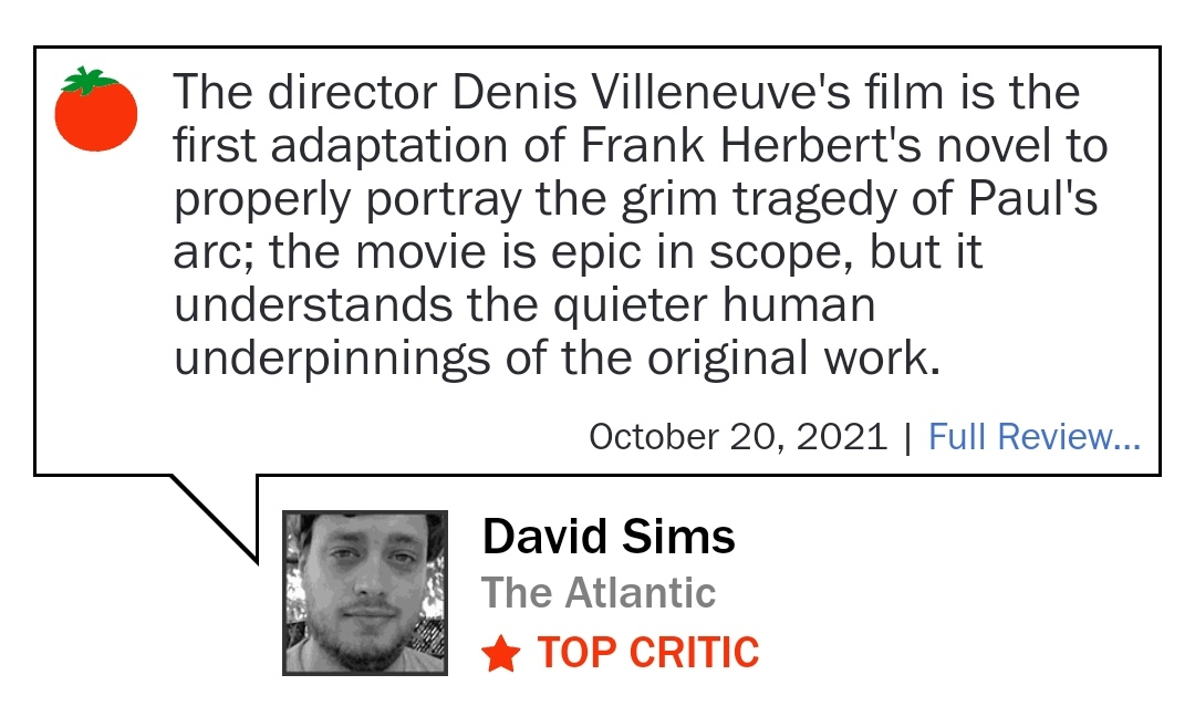 “维伦纽瓦执导的《沙丘》是第一部根据赫伯特的小说改编的电影,它恰当地刻画了保罗人生轨迹的残酷悲剧。”