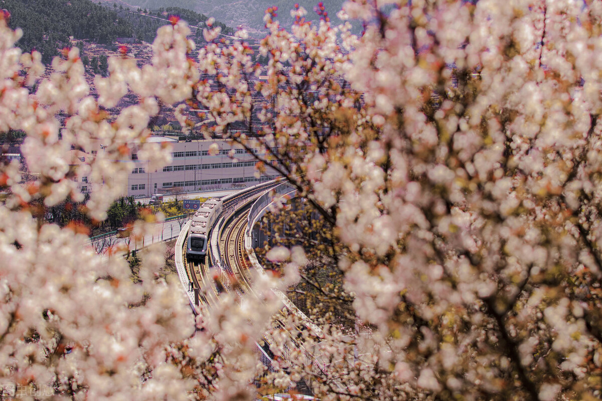 远山横翠,浅红微绽