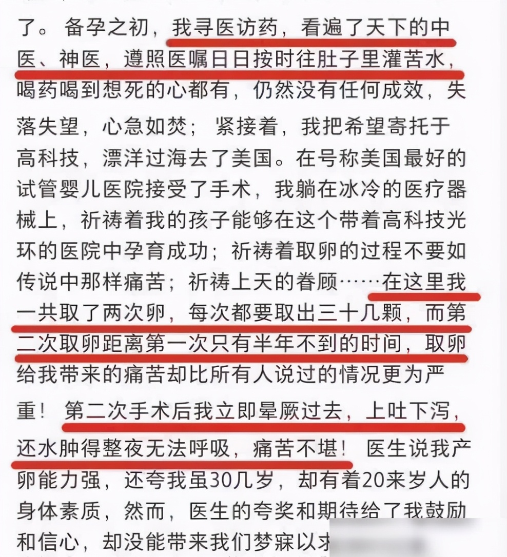 虽然人前十分幸福,但杜星霖表示,自己为了他跟张纪中生的两个孩子,真的是吃遍了苦头,除了看遍名医外,几乎每天都在吃药,但坚持很久都无效果。最后只能在高科技中寻找机会,两年时间,杜星霖做了三次试管,取了70颗卵子,据说第二次的时候,由于疼痛晕倒在手术台上,上吐下泻痛苦不堪。去年的2020年9月10号,杜星霖生下二胎,是个女孩。张纪中也高调地为女儿举办了满月宴。
