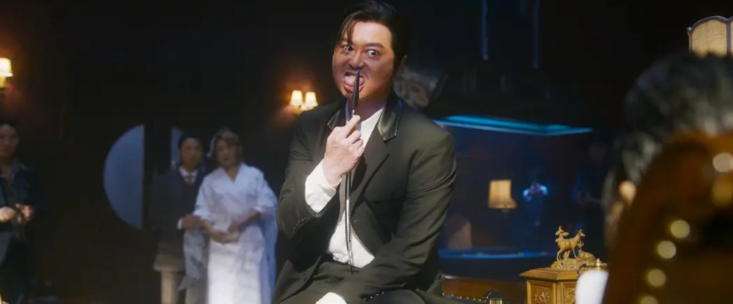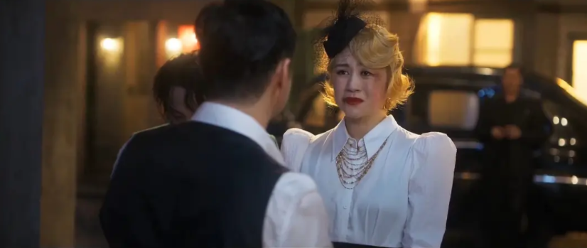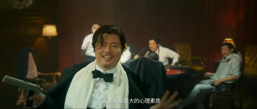 致敬《上海滩》:魏成功答应去见意大利人,模仿了许文强黑西装白围巾的造型。