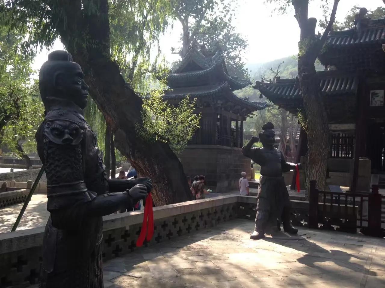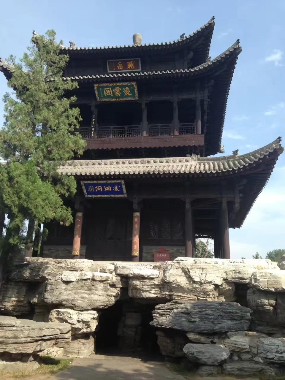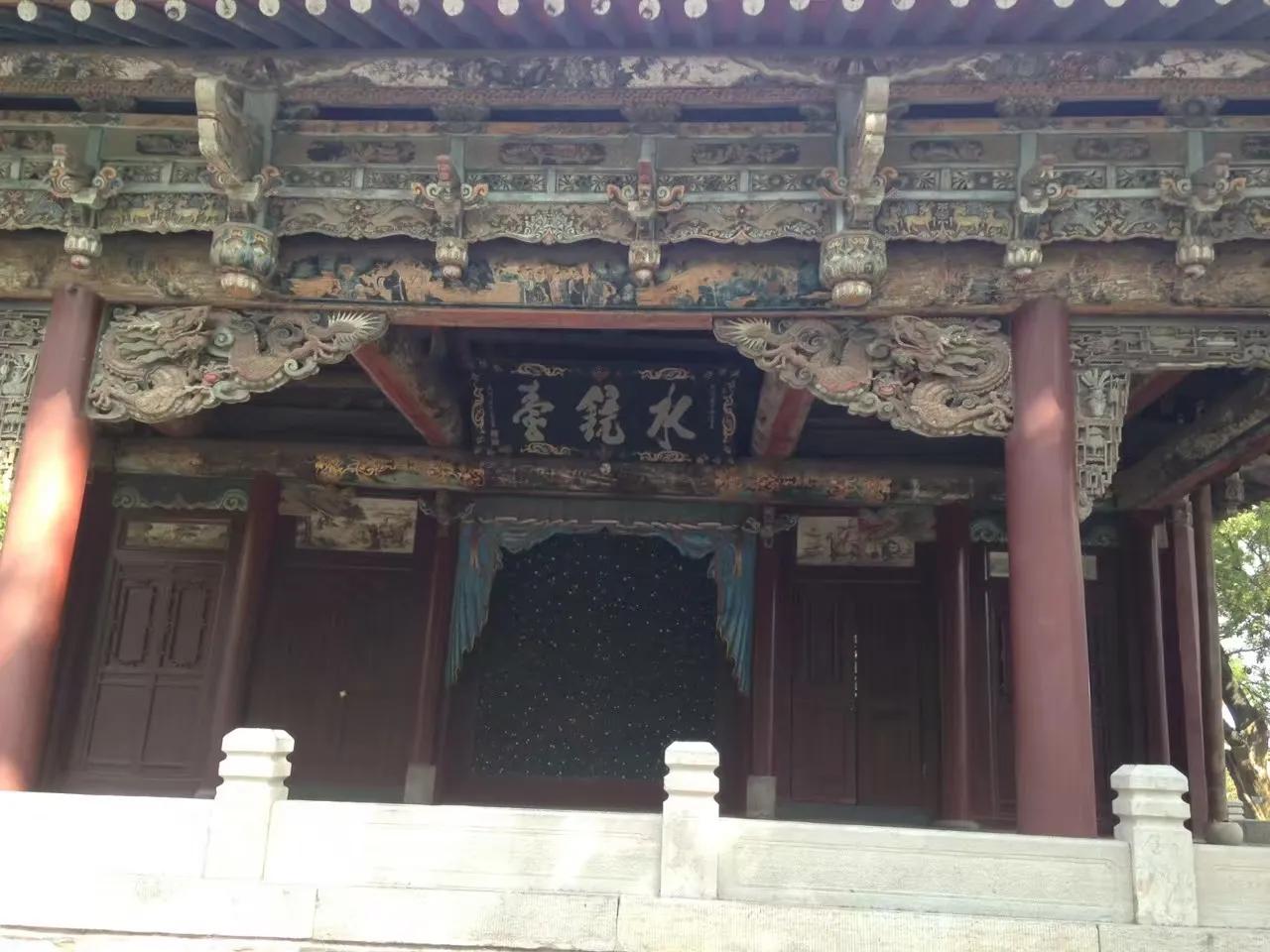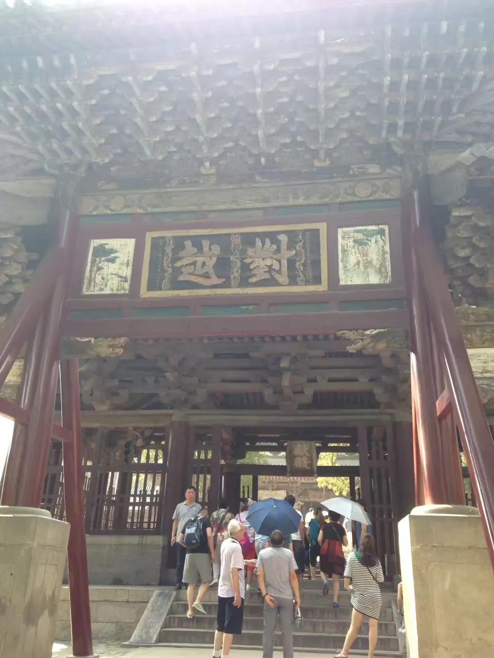 “结飞梁于水上”。即“晋中三宝”之一的鱼沼飞梁,建于北宋政和八年(公元1118年)。古人把方形鱼池称为鱼沼;梁即桥梁。在边长约19米的方形鱼池上建造一座可通往东西南北的交叉十字形桥梁,府看如同大鹏展翅,故有飞梁之称。只是可惜的是该胜景已不复存在,现今所能见到的鱼沼飞梁是07年以后重修的。桥东西两端分别连接“晋中三宝”之二的圣母殿和献殿,两殿分别建于北宋时期。十四年前来的时候还能入殿参观,而今也只是“门外观景”了。