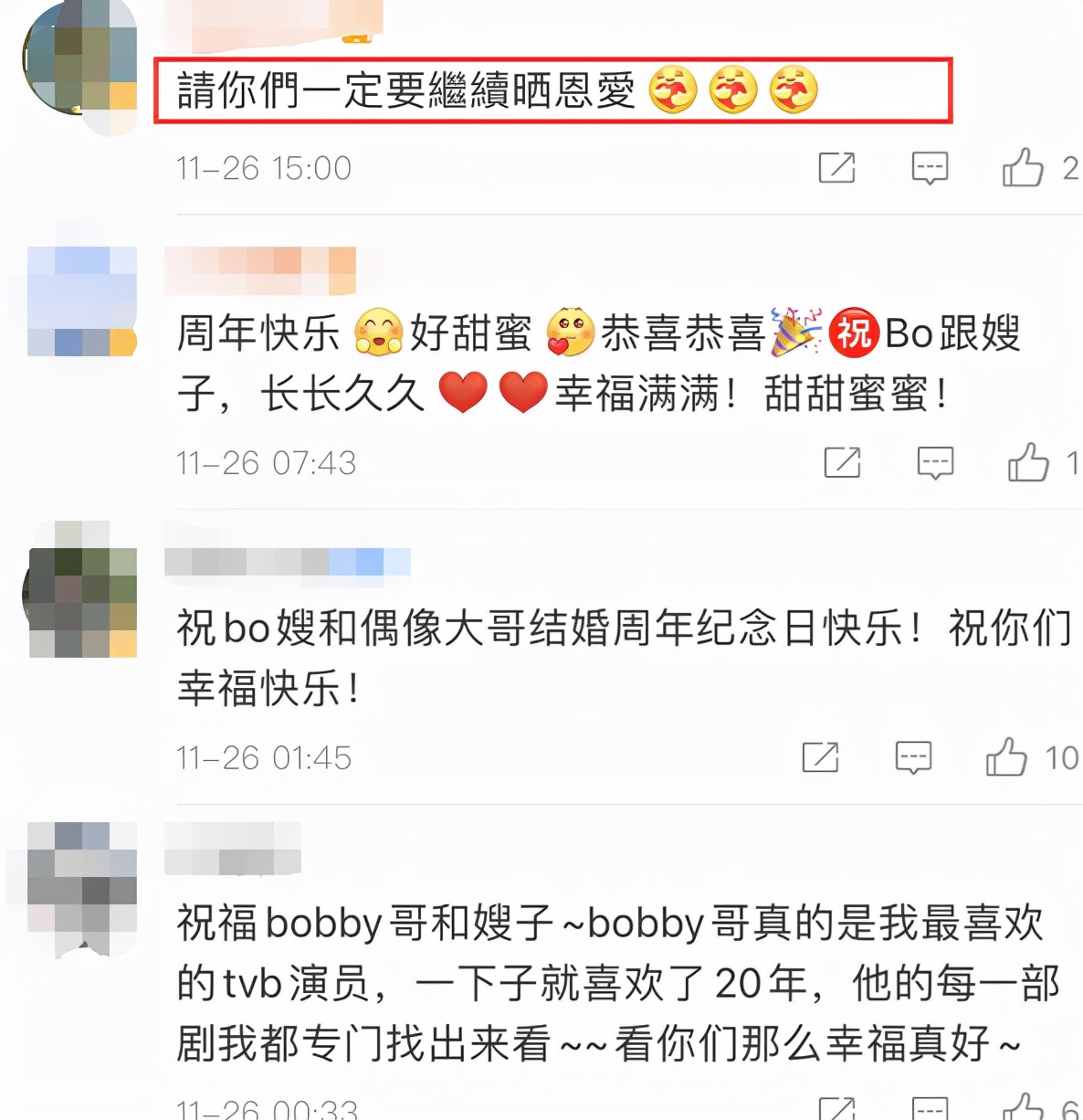 网友们看到这条动态后,纷纷祝福两人能够幸福长久,不少人都表示很喜欢看到他们秀恩爱,也很向往这样美好的爱情。