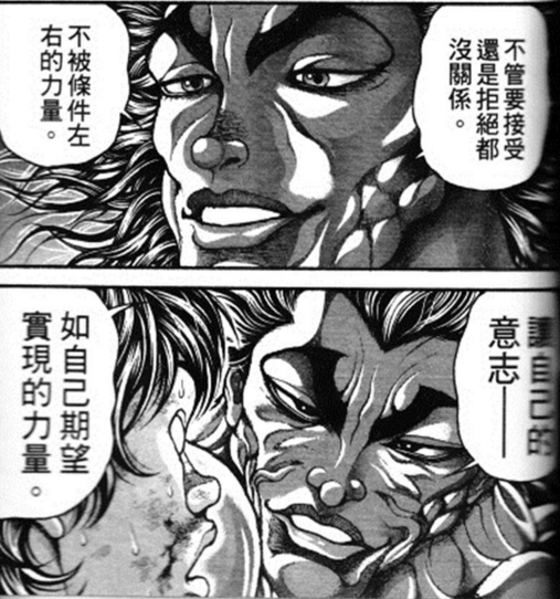 用《刃牙》中的台词来解释的话,那就是“强大的最小单位,就是展现任性和贯彻意志的力量”。只要内心追求强大,那么人就能拥有变强的自由。这种自我放飞的唯心设定,贯彻了整个《刃牙》创作历程,也反映了板垣惠介作为漫画家的罕有习性。