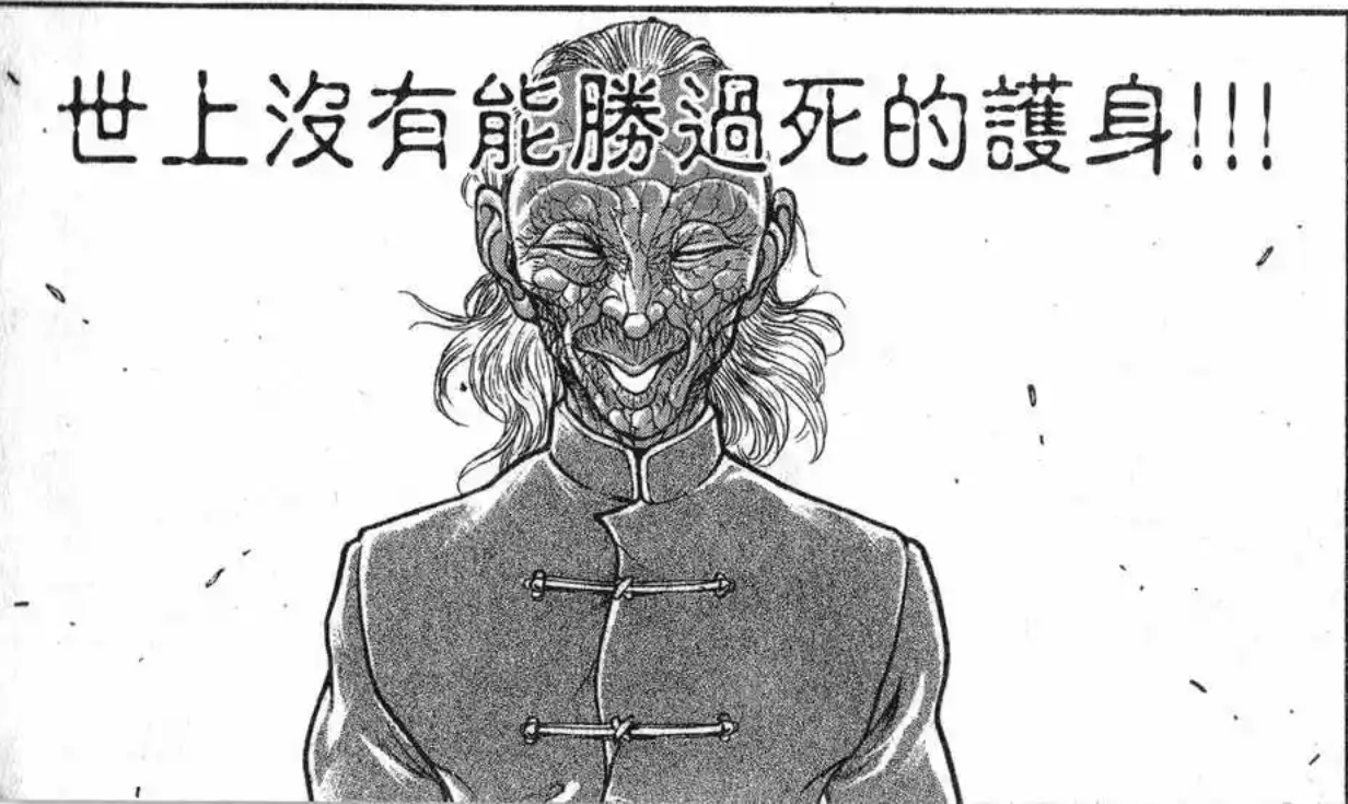 “他,老死了”指玩家不停丧命,最终耗尽护身铜钱的阳寿,导致主角老死重开。而在《刃牙》中,死亡正对应着武技的至高境界,只要在别人打死你之前,自己先一步驾鹤西去,让在场所有人无计可施,那么,自然也就没有什么胜负之分了。