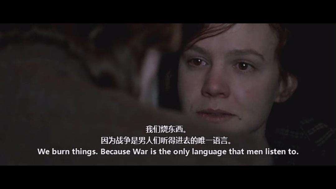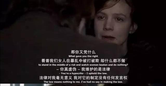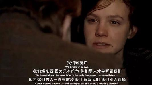 本片强调的是女性参政论者的出发点就是要求与男人一样的权利。因此,她们在使用抗争手段时,也选择与男性一致的方式:使用暴力来抗争。