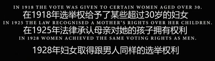 当时一战还没有爆发,伦敦已是世界工业化的先驱。执政者的思想:妇女的父亲、兄弟和丈夫完全可以代表他们,不能给女人们选举权,因为她们智力不够,没有男人的监督和教导,容易犯下错误和罪行。哪里有镇压哪里就有反抗,就是有这么几个勇敢的女人参与着这场为女性争取投票权的斗争。