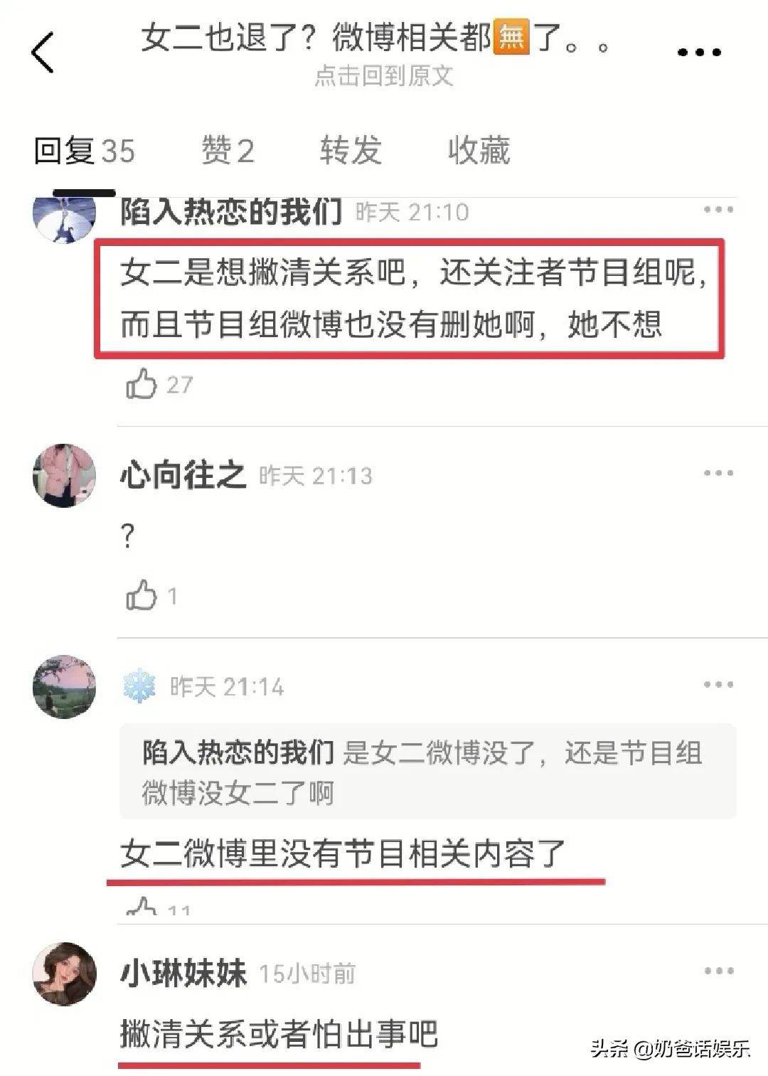 曾晨晨塌房后,网友喊话节目组一次性排查清楚,不要隔三岔五地来一次翻车事件,就在网友等待节目组官宣节目动向之际,女2吴抒洋突然删光了跟节目关联的微博,下图微博也已经不见。