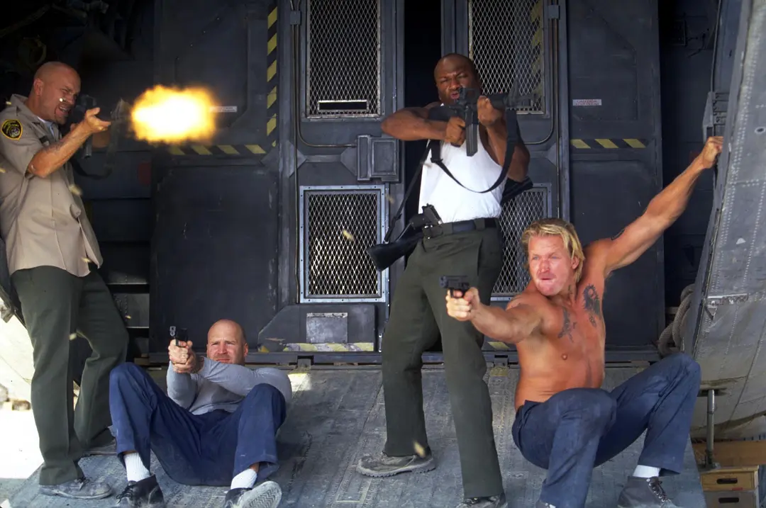 而本片还有个吸引人的部分就是场面宏大,从最初的监狱到后来飞机内的场景再到后来的空中追逐以及最后赌城拉斯维加斯的肉搏战,人物的背景一直在变化,而他们不经意间毁坏的车辆以及建筑简直数不胜数,这部分投入非常大。