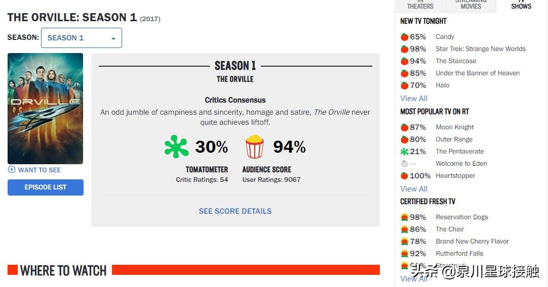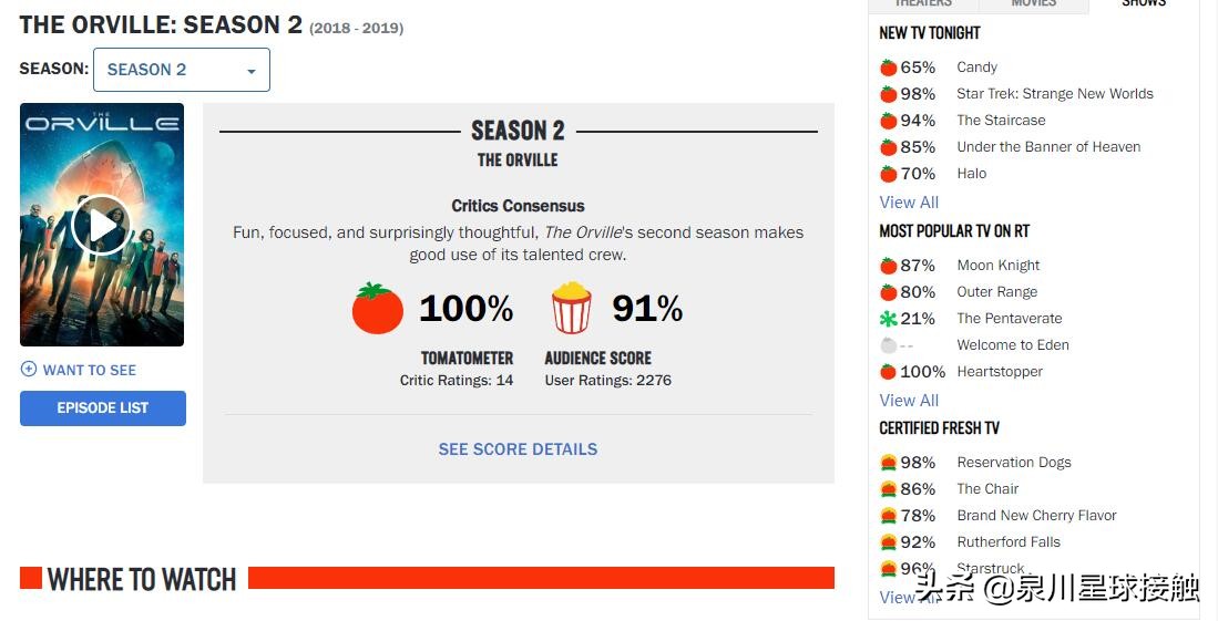 到了奥维尔号第二季播出时,影评圈的评价变成了100%……真是所谓翻脸比翻书快,xx无情xx无义。