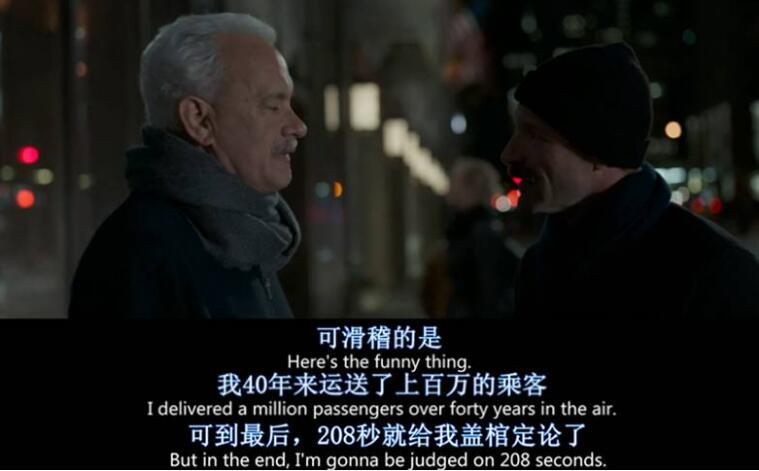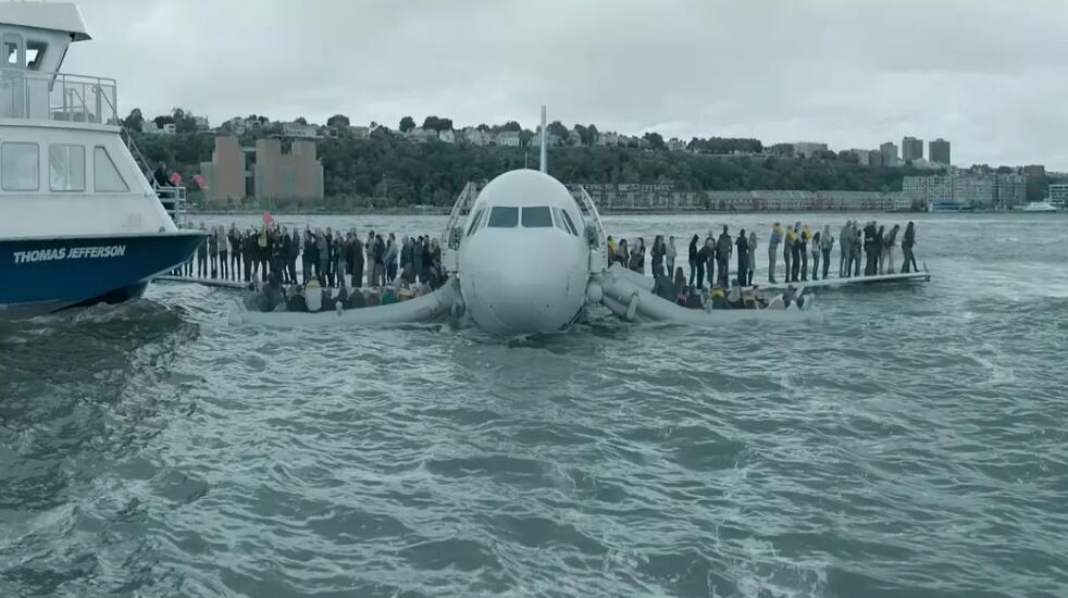 飞机在水面迫降后,前舱舱门的逃生气垫一开始没有打开,乘务员没有注意到,直接让舱门口的乘客疏散,那哥们就真的一猛子扎到冬天的哈德逊河里差点给冻死。不了解这个细节的观众可能会感到一头雾水,但了解整个事件的观众则是会心一笑。
