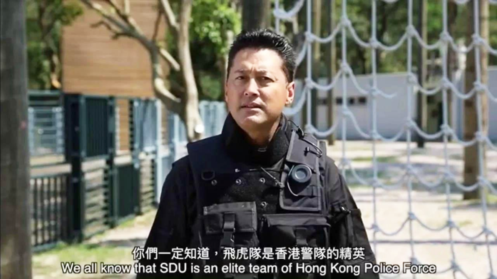 当时他29岁,在片中饰演香港警务处特别任务连教官黄大石(stone wong),是一个正气凛然的高大全角色。