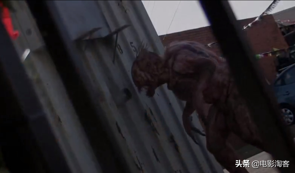 怪兽被摩托车轮子活活磨擦致死。剩下的几人也决定到楼下准备逃离,他们慢慢的从楼梯走下去。神奇的是,格瑞格还没死,被钢管插入脑袋都没死。大街上,突然来了一辆战车,一个带着冲锋枪的怪兽杀星出现了。不要奇怪,他的名字就叫怪兽杀星,这电影里的名字都好奇怪。