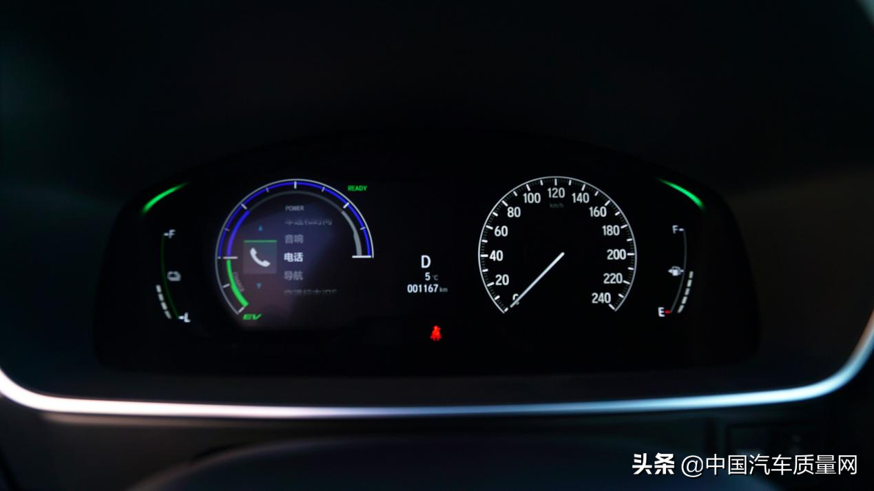 仪表由原来的单筒式改为了双筒式,并采用了机械与7英寸液晶屏的复合设计,同时可进行功率流、续航里程等信息显示,也可通过方向盘按键进行设置,方便快捷。