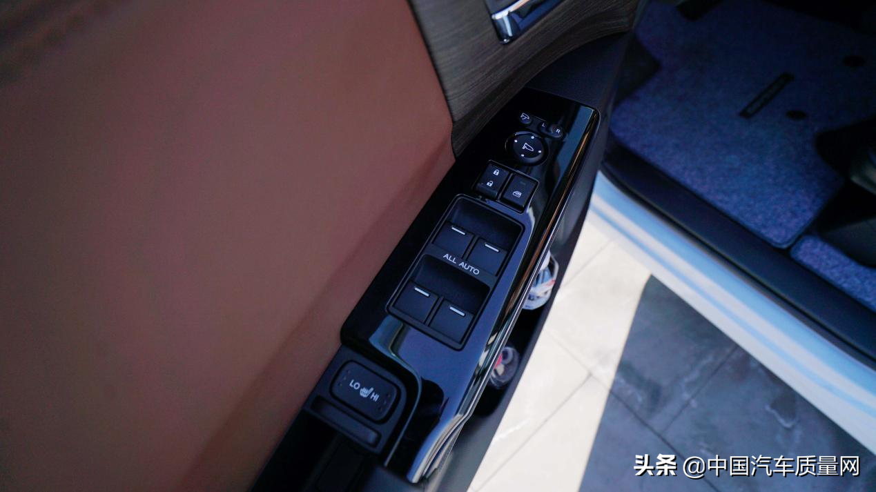 试驾车的四门车窗均带有一键升窗功能,该功能仅为顶配版以及福祉版车型配备,其余版本车型为主驾一键升窗,同时前排座椅还带有座椅加热功能,功能键位于车窗控制按钮后方,个人感觉放置位置过于靠后。