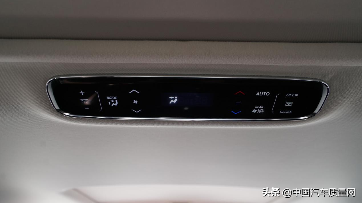 第二排座椅天窗相较于第一排面积更大,在天窗的前部中央位置是天窗与后排空调的控制,方便“幕后boss”选择适合自己的温度,并与前排一样采用触摸式控制,反应较为灵敏迅速。