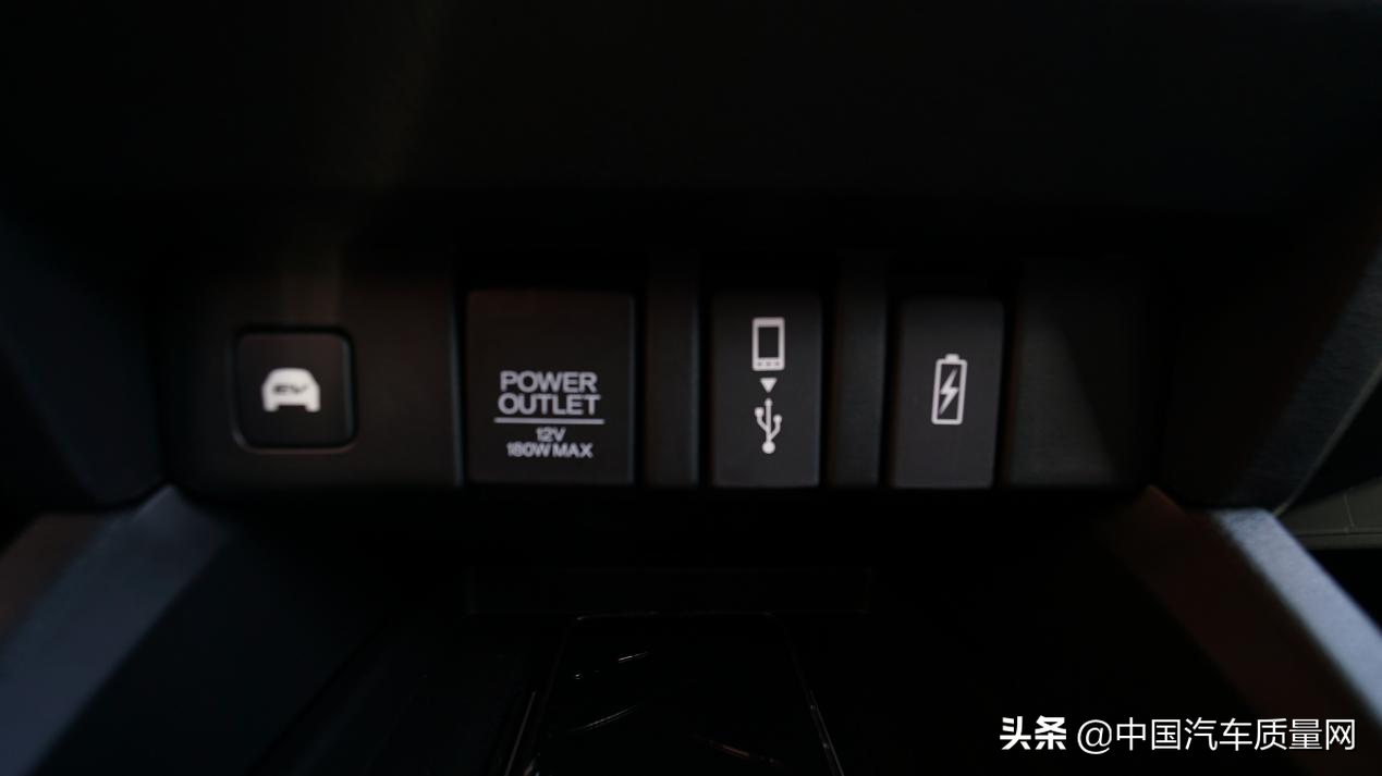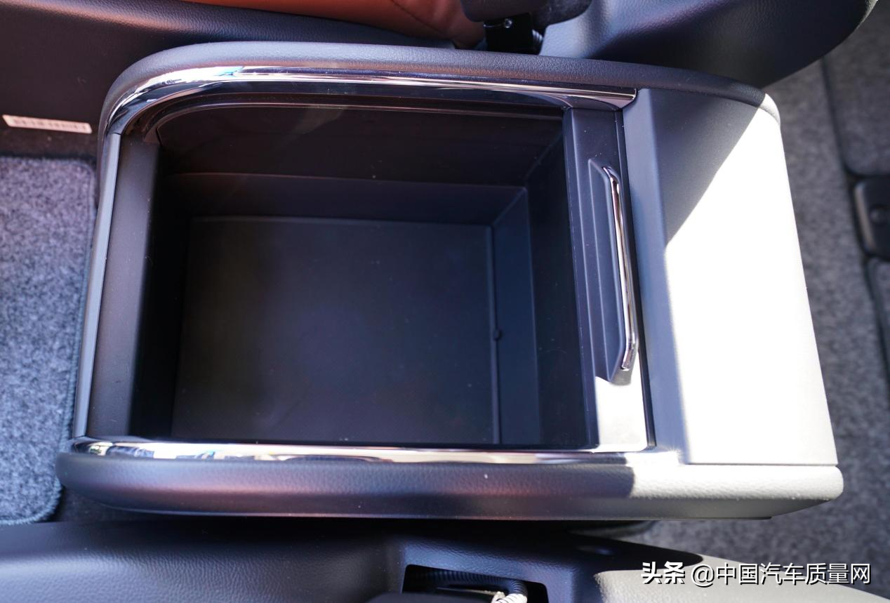 同时在前排中央储物箱的后部还设有一个小型充电电源,在座椅两侧的12v电源被占用时也不用担心手机没有地方充电。
