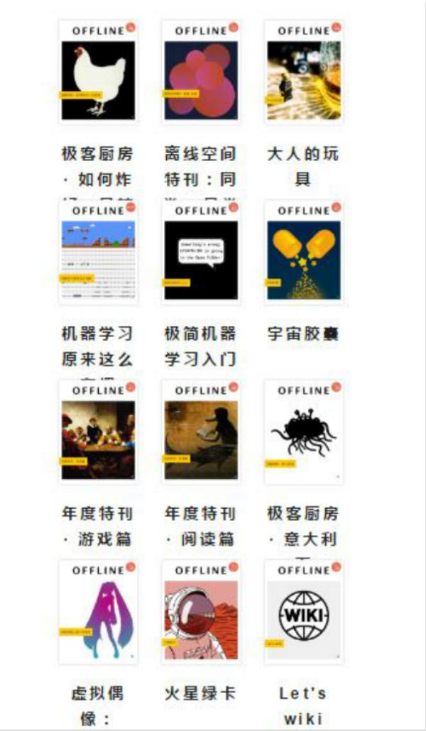 在创刊初期,《离线》的编辑团队希望提供一种不同于碎片化阅读的沉浸式体验,所以会定期发表科技文化类长文,目前部分长文还在亚马逊以电子书的形式销售。