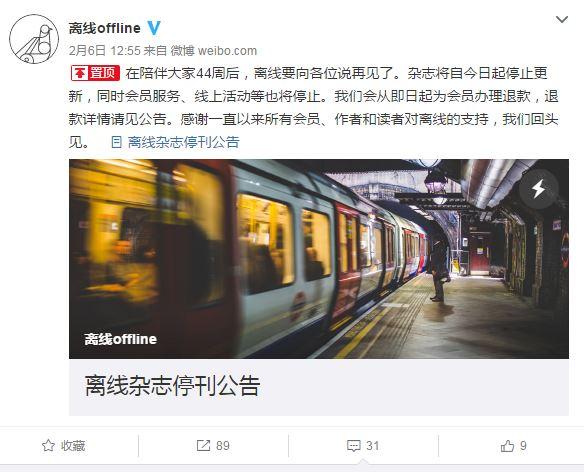 继科技类老牌杂志《大众软件》2017年休刊之后,一本“年轻”的小众科技类电子杂志书(mook)《离线》也在其网站和微博宣布自2017年2月6日起停止更新。