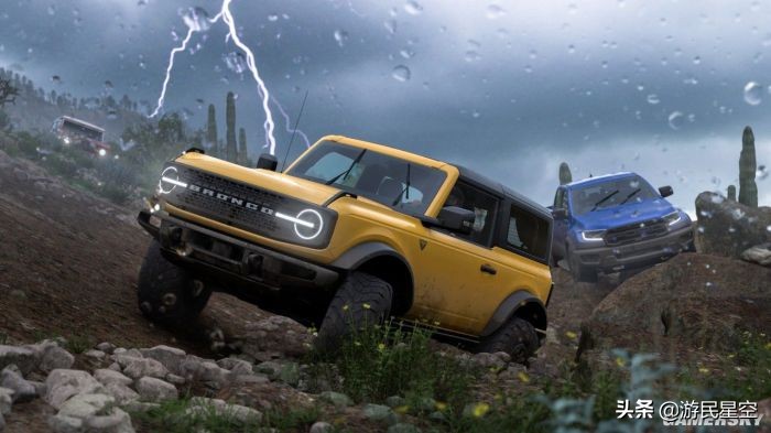 当然,这一切仅仅只限定在框架结构部分,至于游戏中所填充的那些具体内容,则是一幅任由开发者们挥毫泼墨的绝美画卷。要知道,和之前的英国、澳大利亚等地相比,本作所选择的舞台——地处北美的墨西哥,拥有着更加变幻莫测的气候以及相当纷繁复杂的地形,这些大自然所赐予的种种元素,被极好的运用到了《极限竞速:地平线5》之中。