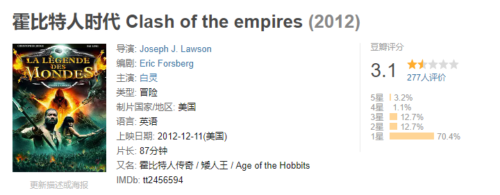 6.山寨《霍比特人》------《霍比特人时代》豆瓣评分3.1分