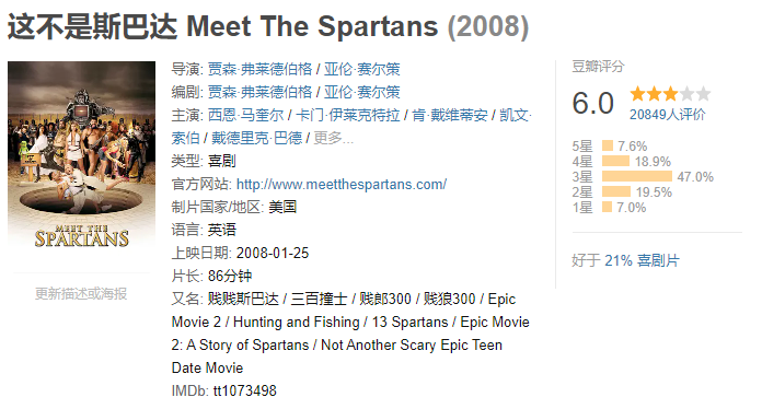 9.山寨《斯巴达300勇士》------《这不是斯巴达》豆瓣评分6.0分