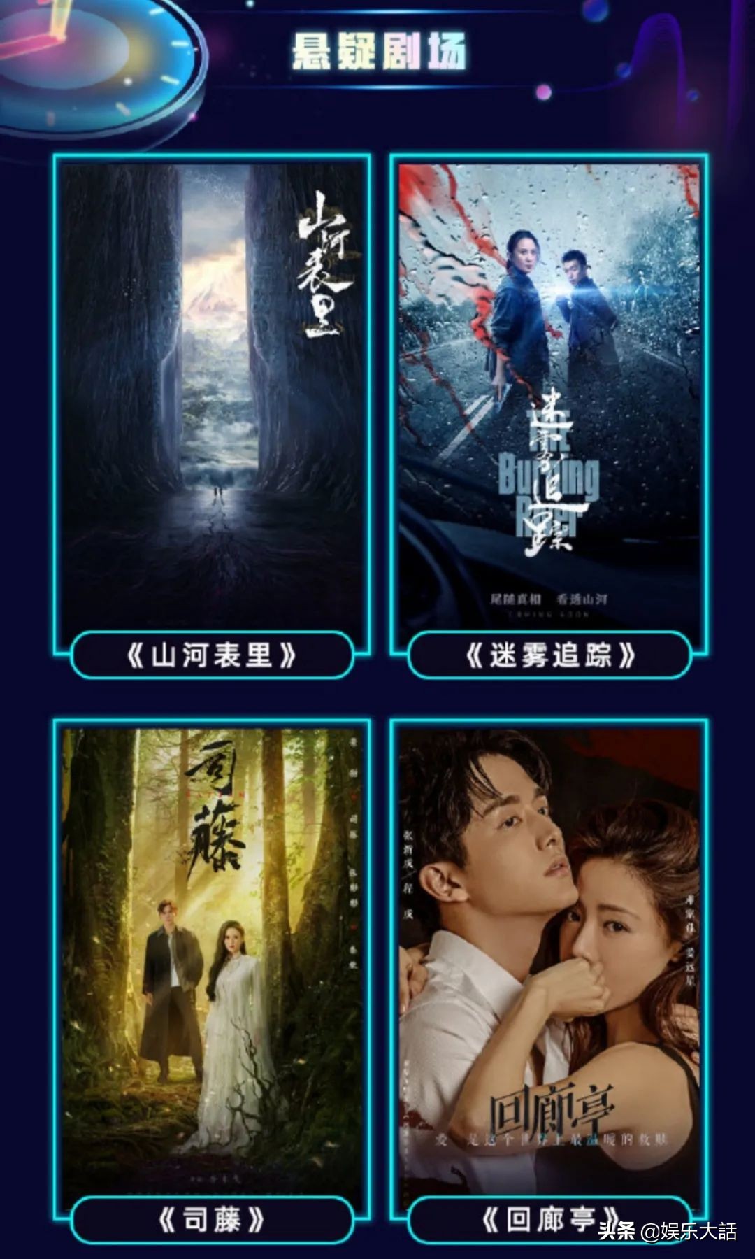 说来,优酷最大的优势,应是—擅长悬疑剧,当年那部大火的《白夜追凶》直接提高了它的会员转化率。所以,这一次,优酷仍把主要目光放在悬疑剧上。