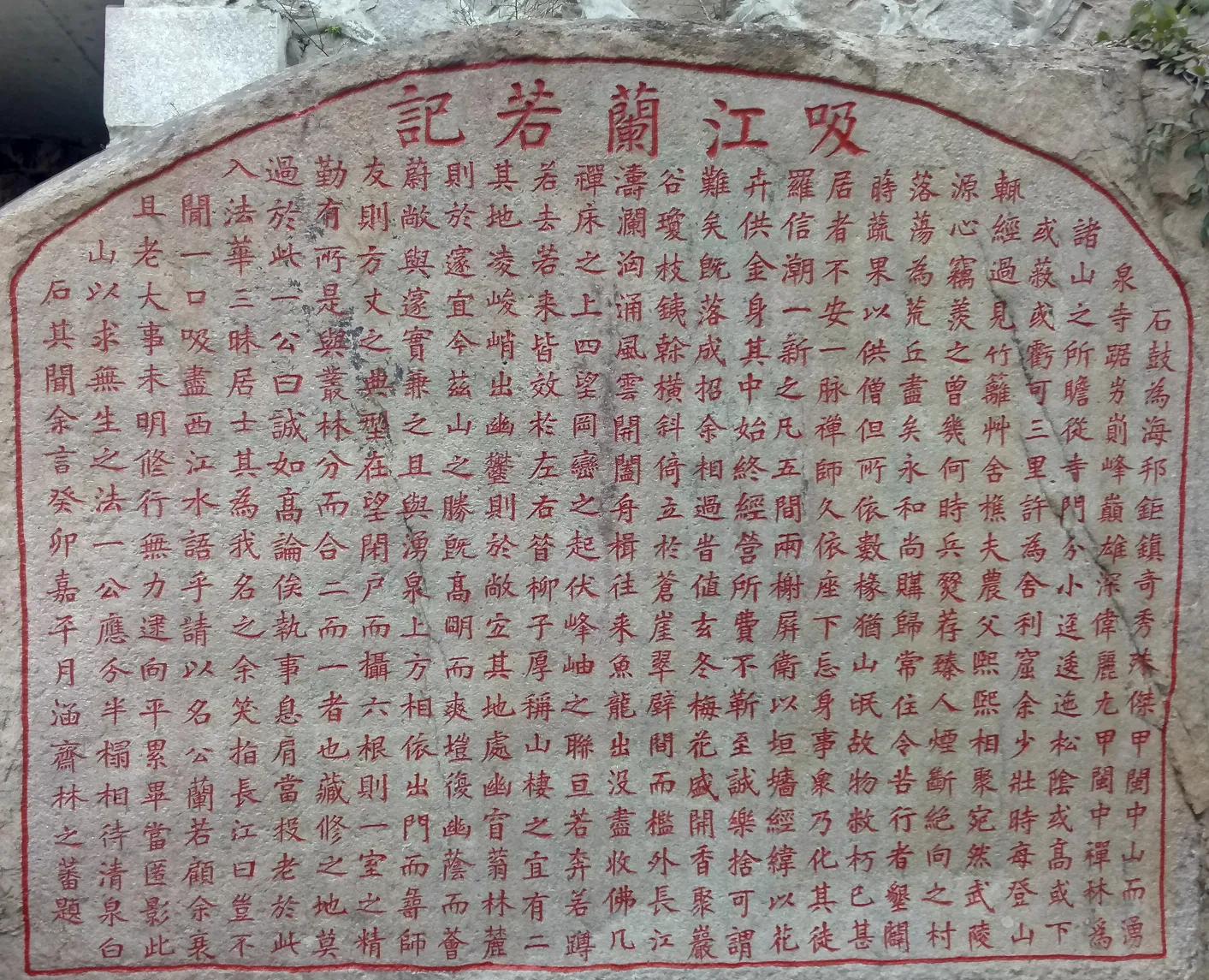 清福州名士魏杰(1796-1876年)曾多次登临鼓山,他对林之蕃家族颇有研究。道光二十三年(1843年),鸦片战争刚打开国门,山河再度飘摇。魏杰来到吸江兰若,面对一片废墟,百感交集,留下诗刻《吸江兰若废址怀林之蕃》:“兰若楼台画劫灰,青山无恙尚崔嵬。林花不语只开落,江月多情自去来。地近桃岩邻古洞,诗镌石壁记栽梅。尚书住后谁知止,借问游人到几回?”