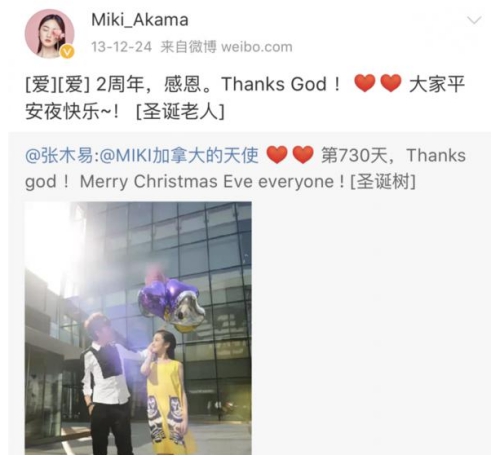 两人因为常常在一起探讨音乐,感情迅速升温。在2011年的圣诞节,两人决定公开在一起。miki 十分热情大胆,在社交网络上放话16岁就要嫁给张木易,当然,在网络上又引起轩然大波。