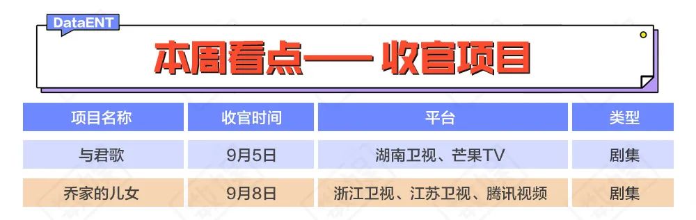 本周共有22个项目定档开播,其中5个剧集,15个电影,2个综艺。