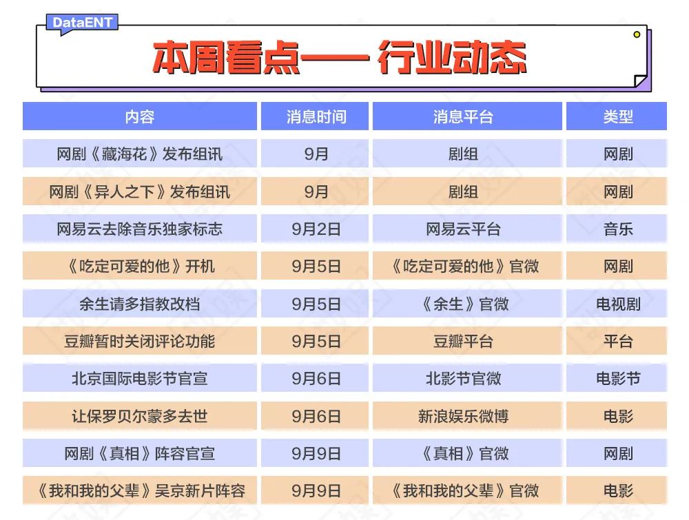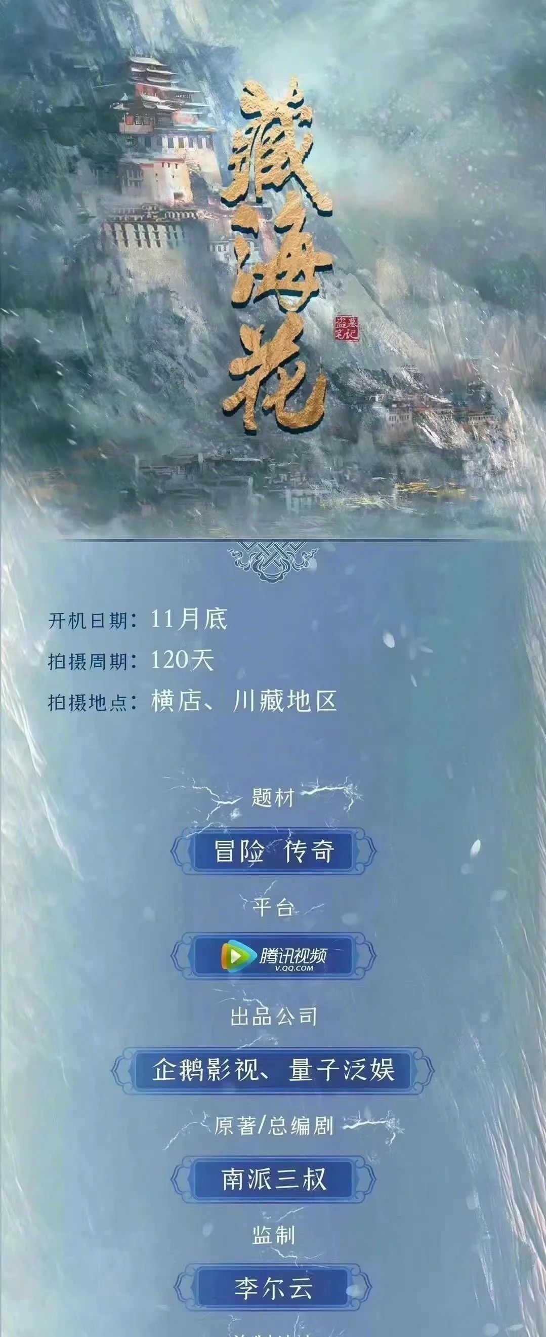 1、网剧《藏海花》发布组讯,预计11月开机。该片由李尔云监制,将在腾讯视频独播。
