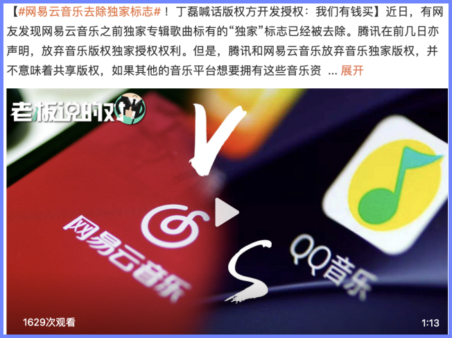 3、9月2日,网易云音乐取消展示歌曲“独家”标识,进一步放开音乐市场的版权自由。
