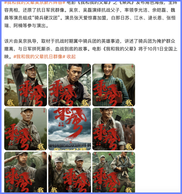 10、9月9日,《我和我的父辈》之《乘风》发布角色海报,全阵容亮相。
