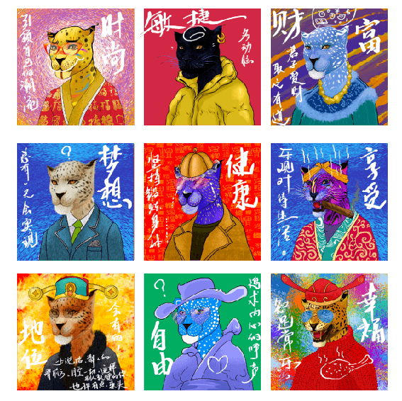 【介绍】金钱豹族诞生于混沌虚空宇宙,无数个金钱豹们抱团在宇宙的中心,由于拥有9999古戈尔条生命它们几乎是不死之身,在这特别的一年里,8888只金钱豹化身为财富的使者,它给人类带来好运,特别是财富的运气!伴随的人类把它们作为自己的形象,二者就可以在元宇宙中合为一体!