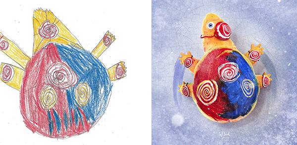 这项活动是与美国德州的一所小学合作,让在校学生以“怪兽”为主题创作。然后将这些作品送至世界各地参与此次计划的画师手上,用他们的风格重绘这些孩子的怪物,接着再将这些更加生动的怪物送回到小学生的手中。