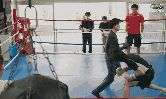 不,很努力的新次,照样被打趴在地。即使他一次又一次爬起来,等待他的只是更沉重的打击。