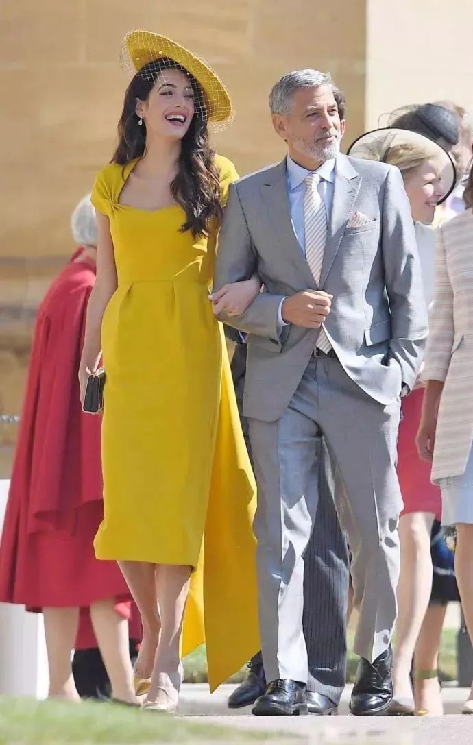 哈里王子和梅根结婚那天,阿玛尔一袭黄色礼服惊艳了众人,有媒体这样介绍说:“国际律师阿玛尔身着明黄色礼服抵达现场,身边的是她丈夫。”