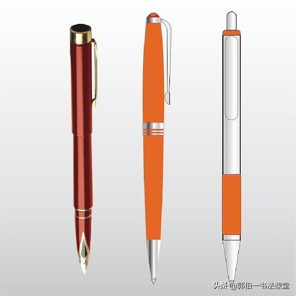 现如今,科学技术发展迅速,硬笔品种琳琅满目,五花八门,成年人选择以钢笔和中性笔为主。钢笔有露尖、包尖的,还有弯头儿的美工笔,这三种笔尖都可以用。但是,初学阶段最好不选择美工笔,如果到学习后期创作作品,需要粗一点的线条来表现自己的书写内容时,可以尝试使用美工笔。中性笔也有粗细和颜色的区别,一般还是采用0.5mm、0.7mm黑色和红色最好。