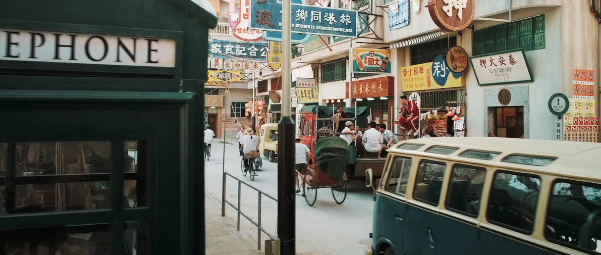 那时香港还充满了林立的店铺招牌,路边铺满了旧时的报章、杂志和小人书,就在蒸汽火车、老爷车、老式巴士、士多店、大排档混杂交织的烟火人声里,斑驳的粤语残片带着沙沙的噪声走入了人们的生活。