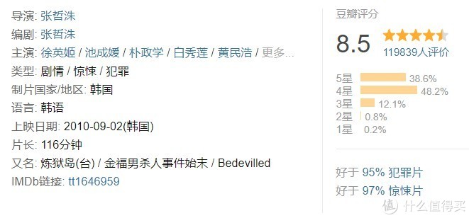多次反转再反转,剧情跌宕起伏,《杀人回忆》男主之一的金相庆的表演也是影片的看点之一。